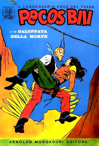 Pecos Bill, lasciata la città in festa, riparte coi suoi amici verso nuove avventure ma, durante una sosta, viene morso da un serprente a sonagli. La ferita viene aperta per succhiare il sangue infetto, purtroppo però gli è ancora rimasto in corpo tanto veleno da provocargli febbre alta e delirio. I due amici lo assistono ma quella notte, mentre essi dormono, Pecos Bill, nel delirio della febbre che lo fa vaneggiare, si sente chiamare dai cavalieri del cielo, che compaiono allorché un cowboy deve morire. Pecos Bill è pronto per l'ultima cavalcata, ma vuole morire nel suo Texas e, barcollando, sale in sella a Turbine per farsi portare nel luogo in cui è nato. La galoppata prosegue per centinaia di miglia, fino ad arrestarsi sulle rive del fiume Pecos. Qui il cowboy si scava una fossa, incide il suo nome su di una croce e si accascia al suolo, mentre una tempesta di sabbia imperversa. Alcuni giorni dopo, dei cowboy trovano la tomba, e la notizia della sua morte si diffonde per tutto il Texas, fino a giungere anche a Davy e Jane che lo stanno cercando. I due si precipitano in Texas, ma Davy rimane indietro poiché il suo cavallo è più lento. Jane raggiunge la riva del fiume Pecos e trova la tomba del suo amato. In questo luogo, vinta dalla stanchezza e dal dolore, perde i sensi. Poco dopo, viene svegliata da tre furfanti che vogliono rapirla, ma la giovane donna riesce a fuggire a cavallo. I tre cowboy non si danno per vinti e si lanciano al suo inseguimento. Uno di loro l'ha quasi raggiunta e, con un colpo di revolver, abbatte il suo cavallo. Jane cade a terra e sviene, ma ecco comparire Pecos Bill che, dopo aver disarcionato il malvivente, le presta soccorso e la porta, ancora svenuta, al sicuro in una grotta. Poi il nostro eroe torna indietro per sistemare le cose con i tre banditi...