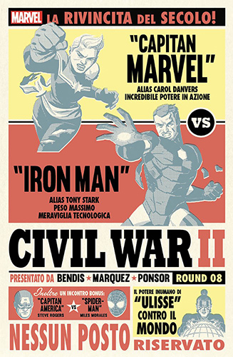 Sopra i cieli di Washington Capitan Marvel e Iron Man si affrontano in una violenta battaglia. Nell'elivelivolo dello SHIELD Maria Hill ordina agli Ultimates e agli Alpha Flight di non intervenire per paura di alimentare il conflitto. Qualche secondo piu tardi la direttrice dello SHIELD viene contatta da Medusa degli Inumani che gli chiede di fermare immediatamente la battaglia. Ulysses ha avuto una terribile visione ma al momento si trova in una sorta di trance e non è grado di riferire i dettagli di quanto ha visto. Mentre gli Inumani decidono di scendere personalmente in campo portandosi dietro Ulysses, Capitan America, nel tentativo di fermare la battaglia, finisce sotto il fuoco incrociato e viene ferito. Assicuratosi che Rogers sia vivo, Iron Man continua a combattere contro Capitan Marvel. Lo scontro raggiunge il suo apice di violenza nel momento in cui la Danvers colpisce Iron Man con tutta la sua forza generando una esplosione di energia che scaraventa Tony Stark fuori dalla sua armatura. Mentre Capitan Marvel viene fermata da Blue Marvel, e Spider-Man raccoglie il corpo di Stark privo di sensi, Ulysses attira l'attenzione di tutti i presenti mostrandogli una serie di scenari futuri in rapida successione: una battaglia tra due gruppi di mostri giganti¹, Nova che si ritrova tra gli X-Men mentre assalgono Nuova Attilan², la morte di Capitan America per mano di Spider-Man, Medusa che osserva Killraven e i Freemen circondati da invasori alieni, Spider-Man che si dispera per la morte di alcuni mutanti uccisi da una Sentinella, Capitan Marvel disperata che guarda Ultron trionfante sopra alcuni Vendicatori caduti, e infine lo stesso Ulysses spettatore di una battaglia tra Thor e Loki. Improvvisamente tutti i presenti si ritrovano sospesi nel vuoto assitendo alla chiamata di Ulysse da parte di Eternità. Il potere dell'inumano si è evoluto al punto da essere invitato a unirsi a lui e alle altre entità astratte dell'omniverso. il ragazzo, felice, accetta e la realtà torna imporvvisamente alla sua normalità. Qualche tempo dopo ritroviamo Carol in compagnia di Hank McCoy intento a collocare Tony Stark in coma all'interno di una camera di stasi. Hank spiega a Carol che Stark in questi anni ha segretamente compiuto degli esperimenti sul suo corpo che gli ha permesso di attivare il sistema di difesa che lo sta mentenendo in vita. Il suo corpo rimarrà al Triskelion dove la Bestia potrà fare ulteriori indagini. Sentendosi in colpa per quanto accaduto, Carol si difende sostenendo di non essere stata lei a iniziare il conflitto. McCoy non è d'accordo affermando che Tony stava combattendo contro di lei per impedirgli di aprire una porta molto pericolosa, temeva che il processo di giustizia e polizia predittiva potesse avere delle conseguenze terribili se questa procedura finiva nelle mani di qualcuno che aveva interessi meno nobili di lei. Quando Carol viene lasciata da sola a rimuginare nei suoi pensieri si presenta Clint Barton che in maniera criptica gli dice che sta per fare qualcosa che non dovrebbe fare chiedendogli di fidarsi di lui. Tempo dopo, alla Casa Bianca, la Denvers incontra il Presidente il quale si dimostra dispiaciuto per la scomparsa di Ulysses e chiede di aggiornarlo sulle conseguenze di quanto accaduto alla comunità supereroistica. Il presidente si dimostra disponibile nei confronti della Danvers dicendogli che ha delle potenzialità per il futuro del paese. Carol gli risponde che ha già qualche idea in merito
