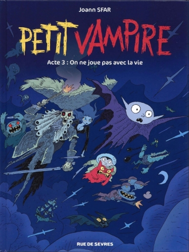 In questo terzo volume, Joann Sfar fa un passo indietro per raccontarci alcuni retroscena del passato di Piccolo Vampiro e della sua bizzarra famiglia. Scopriremo in che modo lui e sua mamma sono diventati vampiri, assisteremo al colpo di fulmine tra la Signora Pandora e il Capitano dei Morti... e faremo la conoscenza del Gibboso, un nemico spietato e rancoroso che da secoli cerca di annientare Piccolo Vampiro e i suoi genitori. Costretti a nascondersi nella casa infestata, al riparo di una potente e invisibile barriera protettiva, Pandora e il Capitano hanno cancellato ogni ricordo del losco persecutore dalla memoria del piccolo protagonista. Ignaro del tremendo pericolo, Piccolo Vampiro non capisce perché gli sia vietato uscire e scalpita per andare in città e fare amicizia con i bambini della sua età. Così, con la complicità degli amici mostri, approfitta delle serate cineforum nella casa infestata per sgattaiolare via insieme a Pomodoro e volare fino alla scuola... dove, come i lettori di Sfar già sanno, farà amicizia con Michele. Piccolo Vampiro è al settimo cielo: finalmente ha un amico! Ma purtroppo le sue scappatelle non sono passate inosservate, e la minaccia del vecchio nemico torna a incombere sugli abitanti della casa infestata... e persino su Michele! A quasi vent'anni dalla pubblicazione del primo episodio di Piccolo Vampiro, Joann Sfar riprende in mano l'inizio della storia per riscriverlo insieme a Sandrina Jardel (la cui omonimia con la compagna di classe di Michele non è certo casuale). Chi ha letto Piccolo Vampiro 1 potrà apprezzare questa nuova versione dei fatti, un po' più dark della precedente ma sempre irresistibilmente ironica, e ritroverà alcune scene già note presentate da una prospettiva un po' diversa